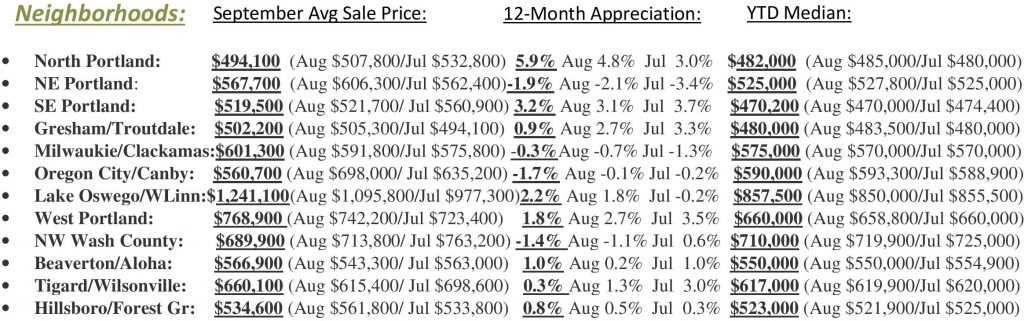 According to the RMLS Market Action Report for the Portland Metro Area September 2025:
